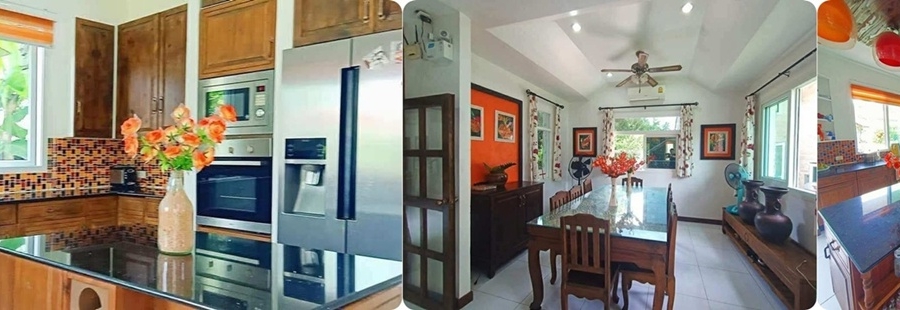 - ตัวบ้าน 3 ห้องนอน 4 ห้องน้ำ ( มี 2 ห้องนอนที่มีอ่างอาบน้ำ ) ห้องครัวสไตล์ยุโรป และมีสวนหย่อมด้านหน้า