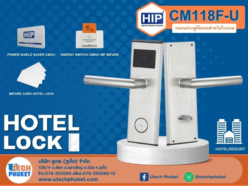 Hotel Lock ระบบล็อคประตูดิจิตอล HIP HOTEL LOCK CM118F-U